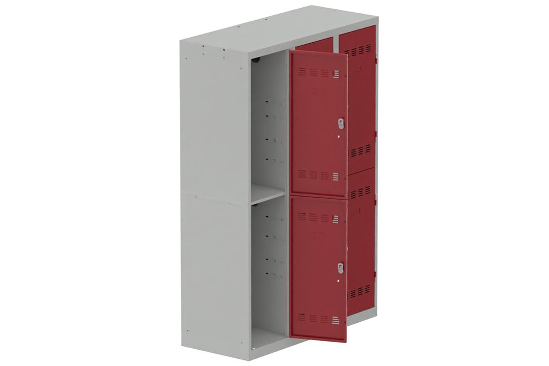 Vestiaire multicases 3 colonnes L,40cm 2 cases (fermeture cadenas) H,180xL,120xP,50cm coffre gris clair/portes rouge