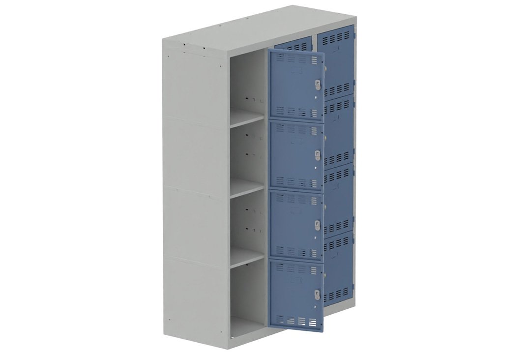Vestiaire multicases 3 colonnes L,40cm 4 cases (fermeture cadenas) H,180xL,120xP,50cm coffre gris clair/portes bleu