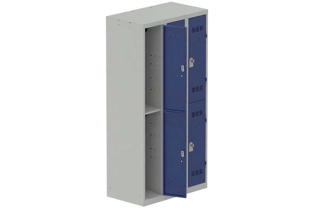 Vestiaire multicases 2 colonnes L,30cm 2 cases (fermeture cadenas) H,180xL,60xP,50cm coffre gris clair/portes bleu