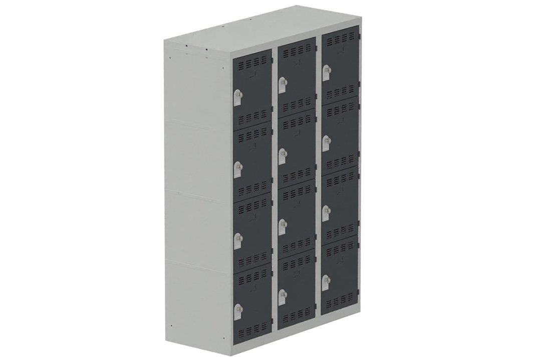 Vestiaire multicases, 3 colonnes L.120cm/12 cases, coffre gris clair/portes anthracite