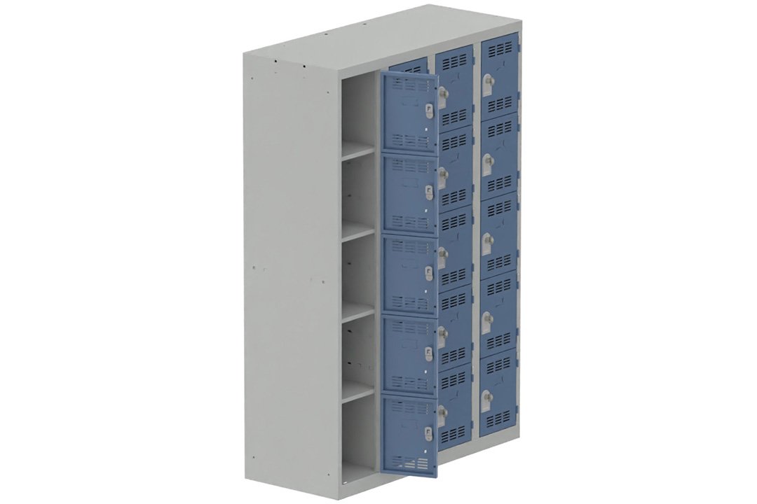 Vestiaire multicases 4 colonnes L,30cm 5 cases (fermeture cadenas) H,180xL,120xP,50cm coffre gris clair/portes bleu
