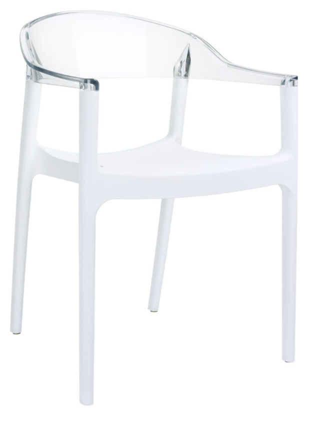 WALLIS-Fauteuil design bicolore en polycarbonate transparent -jeu de couleur et de transparence -Finition blanc et transparent