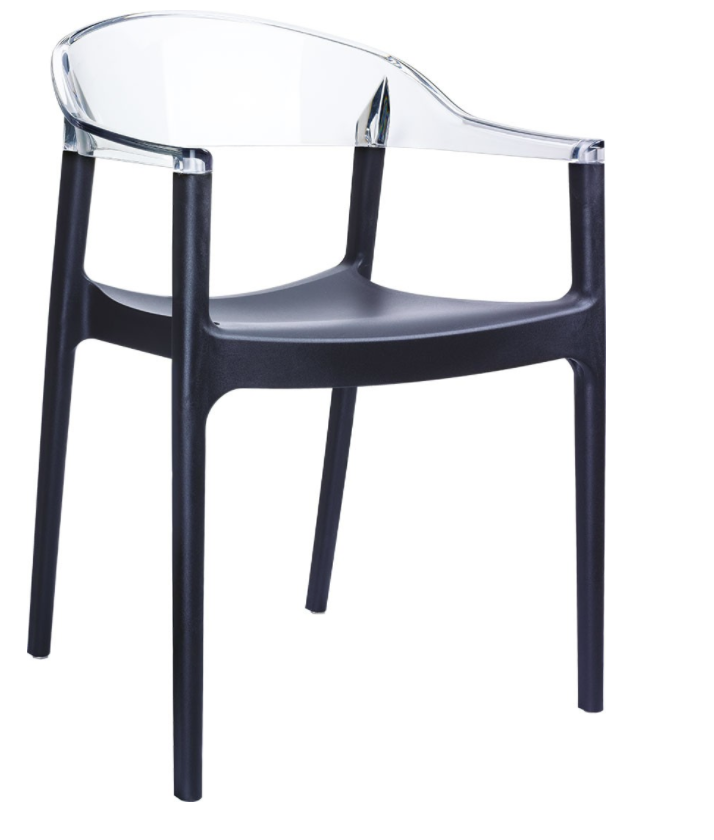 WALLIS-Fauteuil design bicolore en polycarbonate transparent -jeu de couleur et de transparence -Finition noir et transparent
