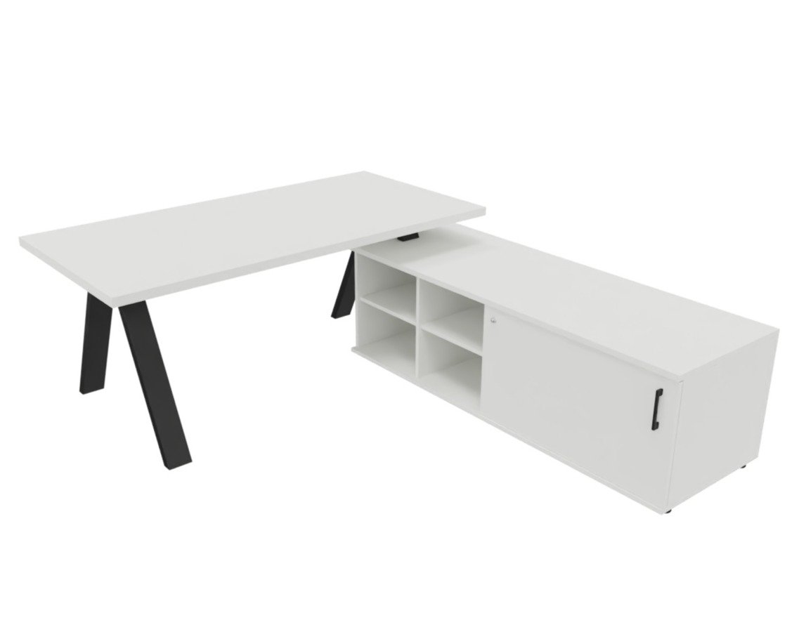 - X3 Plan Manager 200*100cm + meuble USE ME sans caisson à droite. Plateau Blanc et piètement Noir.