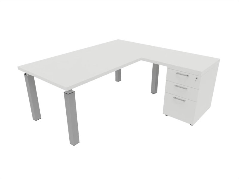 X4 Ensemble de bureau 180x90cm + retour 60x100cm sur caisson porteur bois 3 tiroirs blanc / blanc - sur délai