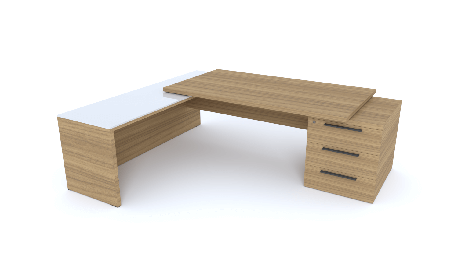 X5- Plan Manager 200x100cm avec retour 100x60cm sur caisson hauteur bureau 3 tiroirs (encombrement 200x200cm)