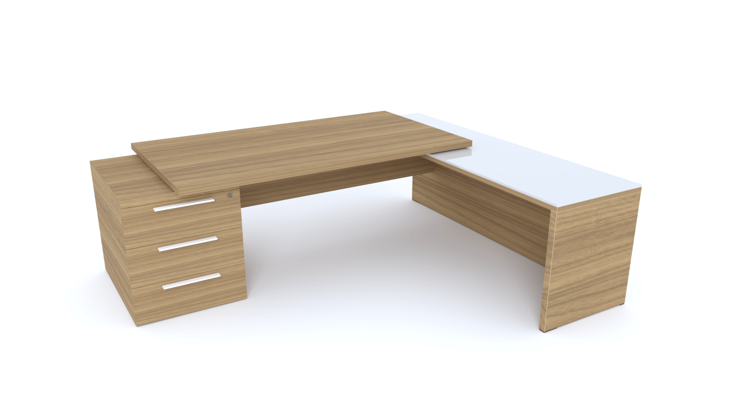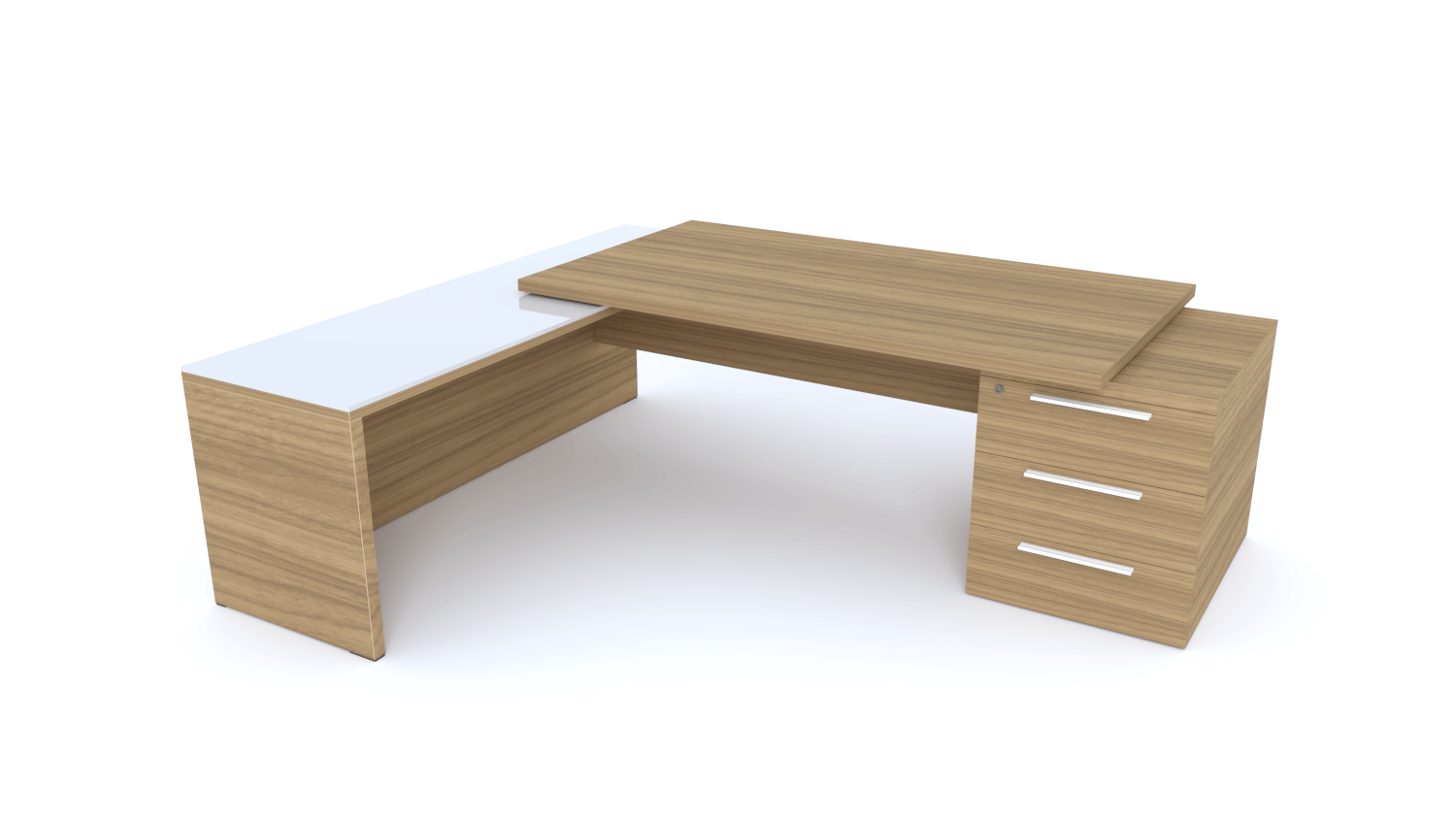 X3 Plan Manager 180x90cm + retour 100x60cm sur caisson hauteur de bureau 3 tiroirs (encombrement 180x190cm)