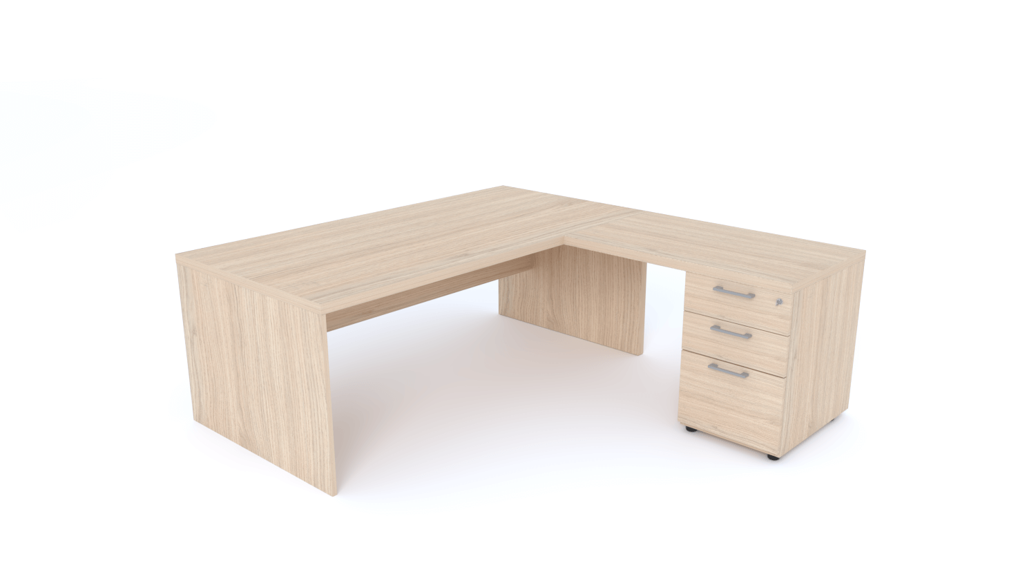 X5- Plan Manager 180x90cm avec retour 100x60cm sur caisson hauteur bureau 3 tiroirs (encombrement 180x190cm)