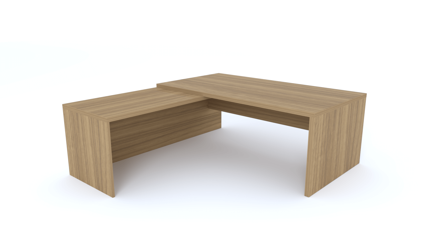 X5- Plan Manager 180x90cm avec retour mur aligné (encombrement 180x200cm) -Finitions = Plateaux: Noyer / Piètement : Noyer