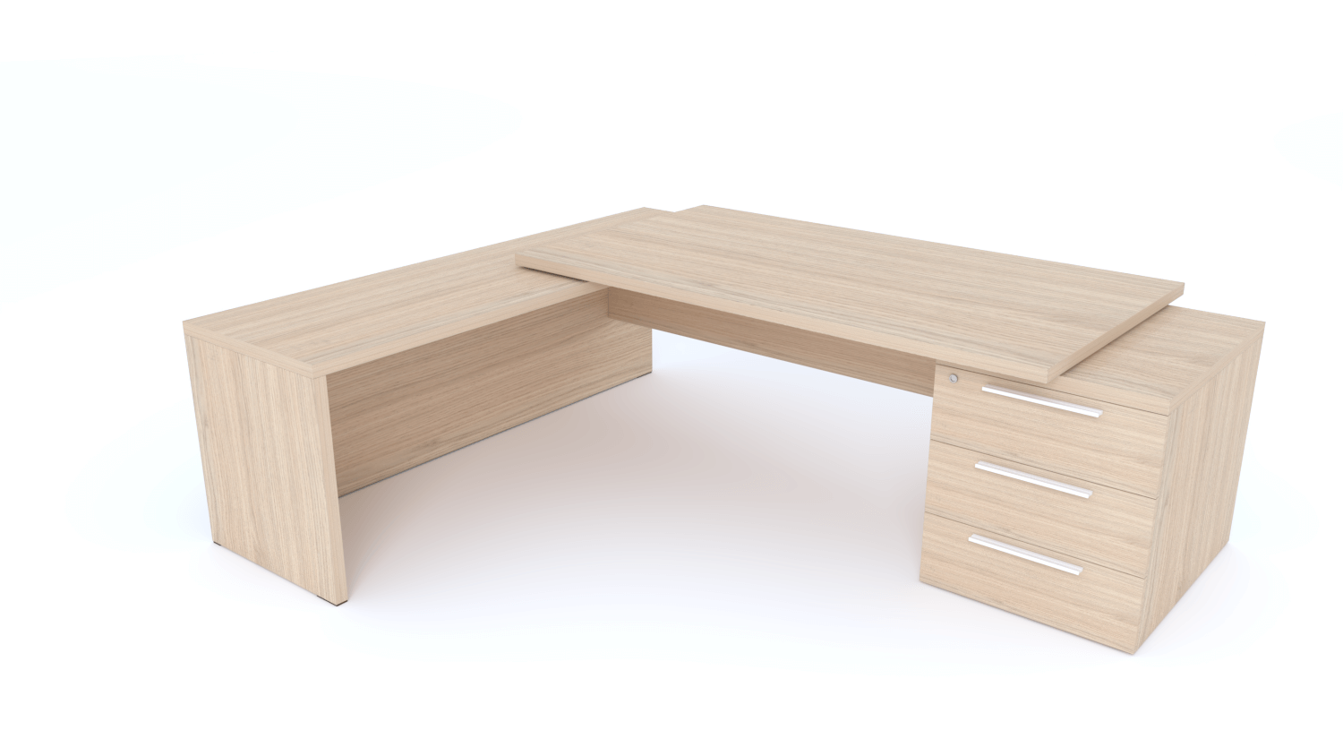 X5- Plan Manager 180x90cm sur caisson XXL 3 tiroirs avec retour mur débordant (encombrement 236x200cm) -Finitions = Plateau : Chêne (CE) / Caisson : Chêne (CE)