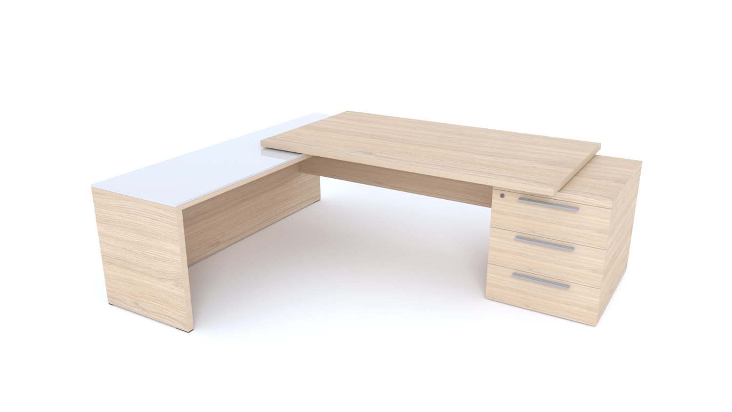 - X5- Plan Manager 180x90cm sur caisson XXL 3 tiroirs avec retour mur débordant top verre (encombrement 236x200cm)