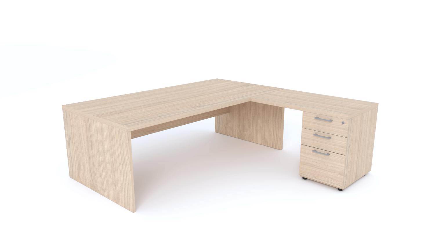 X5- Plan Manager 200x100cm avec retour 100x60cm sur caisson hauteur bureau 3 tiroirs (encombrement 200x200cm)