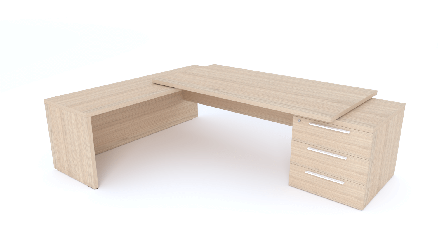 - X5- Plan Manager 200x100cm sur caisson XXL 3 tiroirs avec retour mur débordant (encombrement 256x200cm)