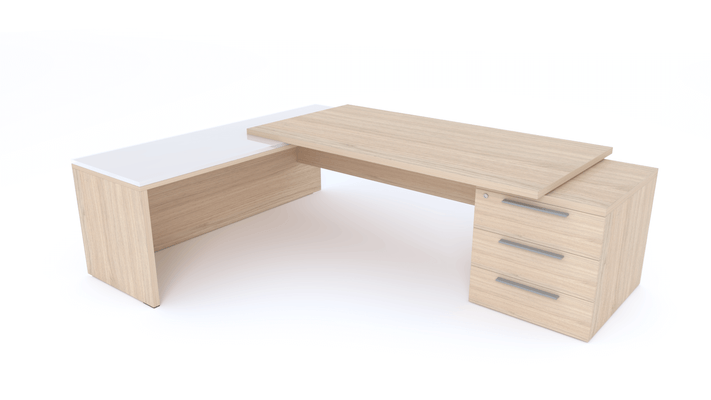 X3 Plan Manager 180x90cm + retour 100x60cm sur caisson hauteur de bureau 3 tiroirs (encombrement 180x190cm)