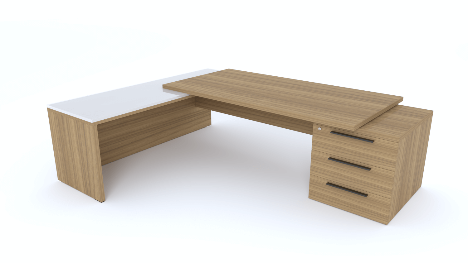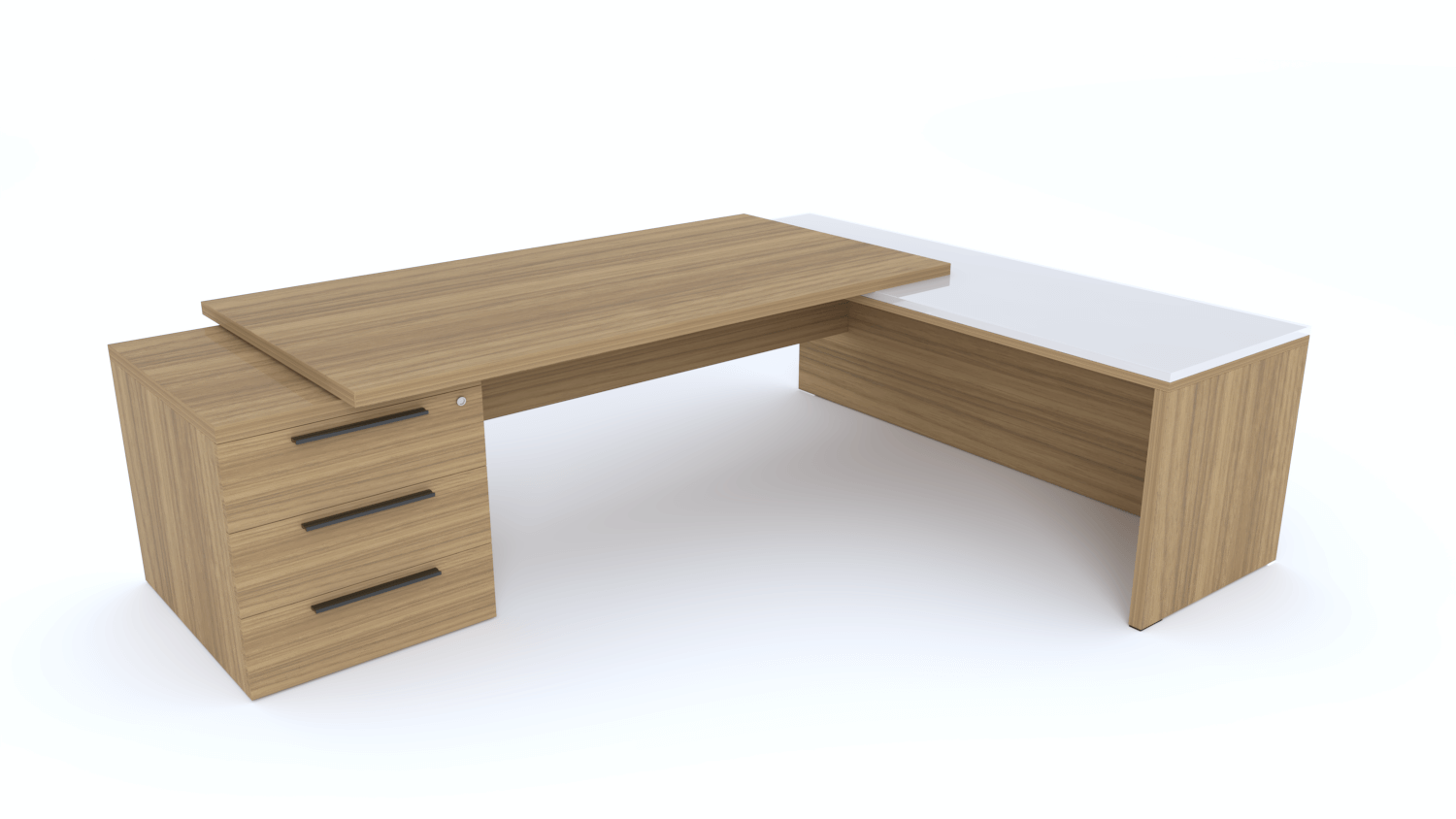 X5- Plan Manager 200x100cm avec retour 100x60cm sur caisson hauteur bureau 3 tiroirs (encombrement 200x200cm)