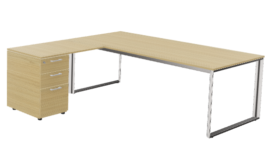 X5- Plan Manager 200x100cm avec retour 100x60cm sur caisson hauteur bureau 3 tiroirs (encombrement 200x200cm)