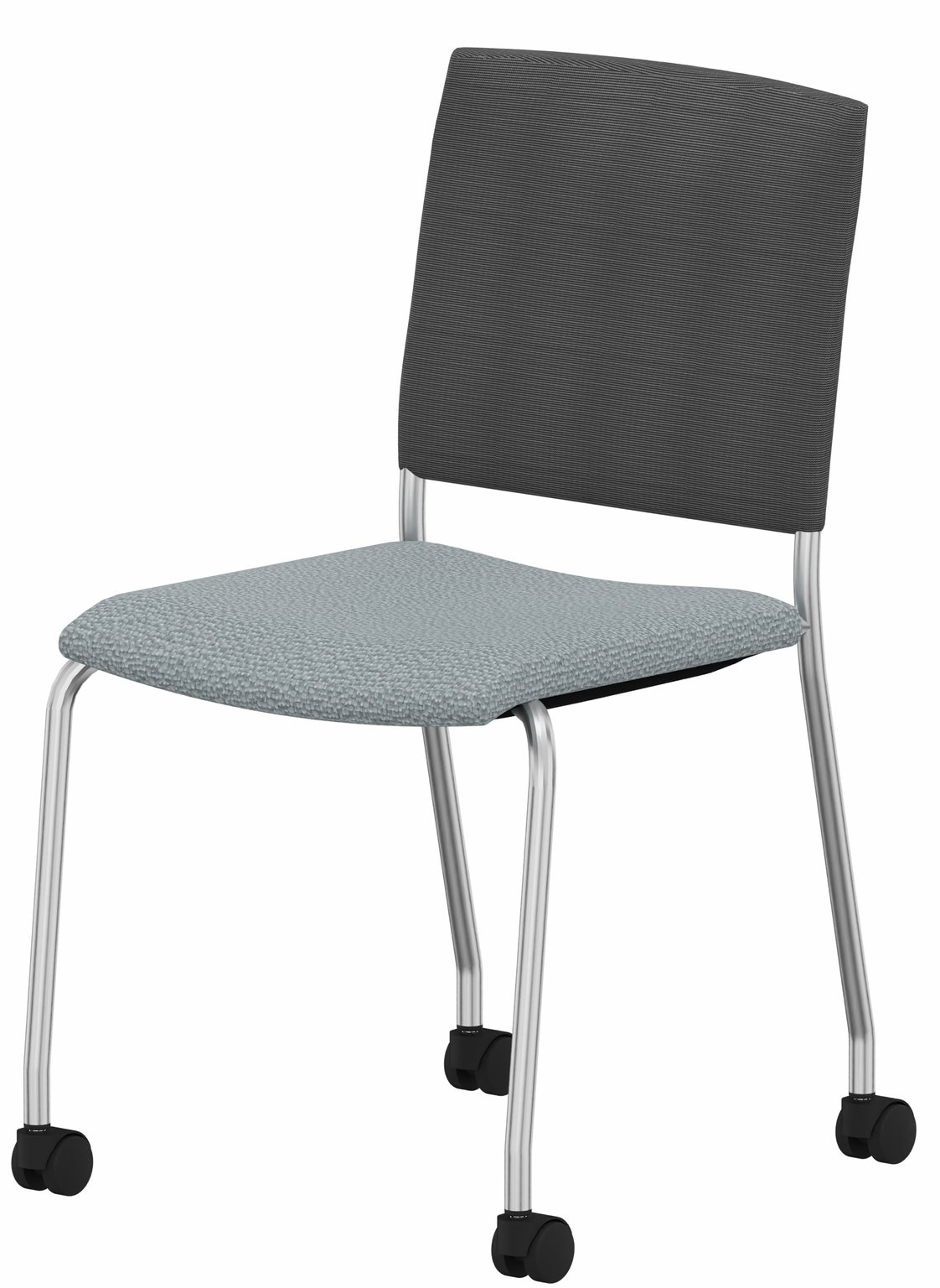 ZEN mesh visiteur - Chaise 4 pieds sur roulettes alu (AL).Assise tissu et dossier résille Bondai Gris Clair (8078)
