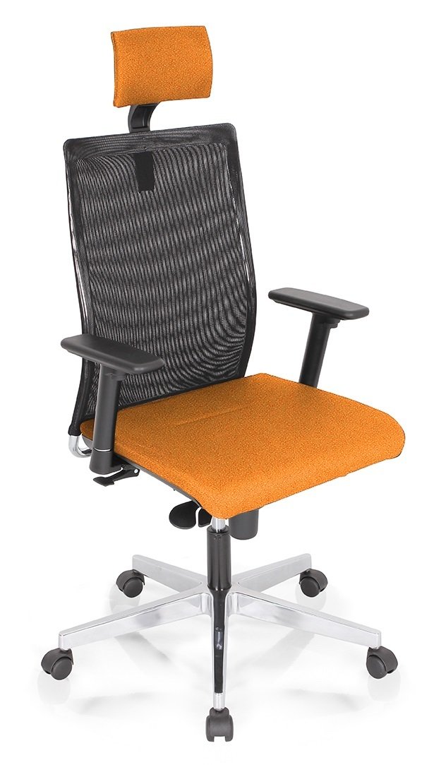 Siège de travail FIRST, mécanique synchrone, tissu orange, structure nylon noir - sur délai