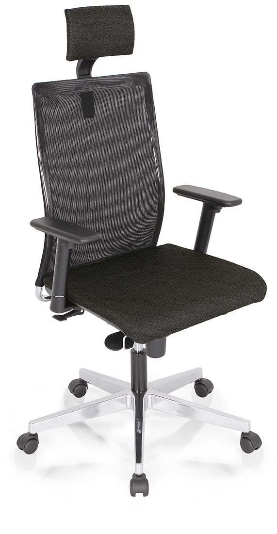 ZEN MESH MANAGER fauteuil manager avec accotoirs synchrone décalé avec translation d'assise, tissu LUCIA anthracite(YBP), dos résille noire, structure chromée