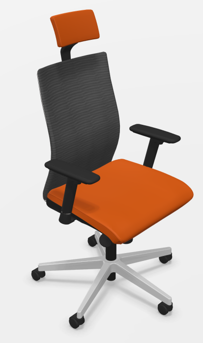 ZEN MESH MANAGER fauteuil manager avec accotoirs synchrone décalé avec translation d'assise, tissu LUCIA orange, dos résille noire, structure chromée
