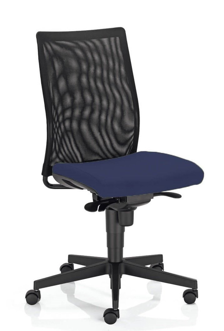 ZEN MESH siège opérative synchrone décalé avec translation d'assise, tissu bleu, dos résille noire, structure nylon noir -