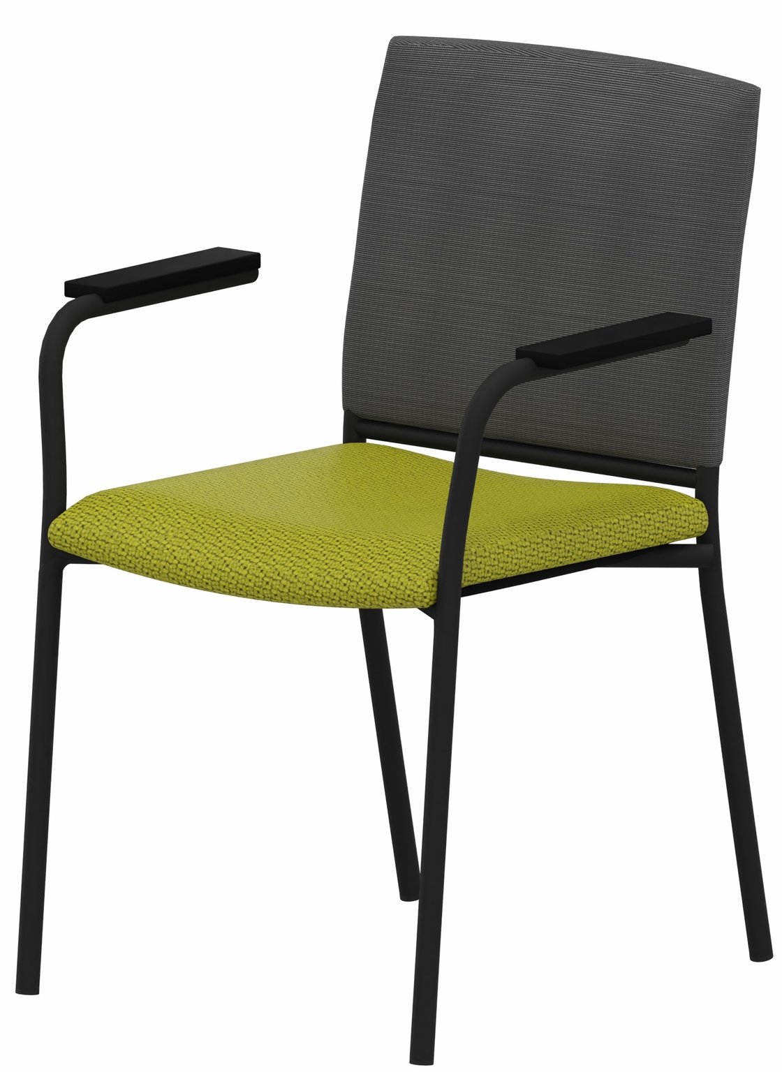 ZEN mesh visiteur - Chaise 4 pieds avec accotoirs laqué noir (A).Assise tissu et dossier résille Step Vert (L08)