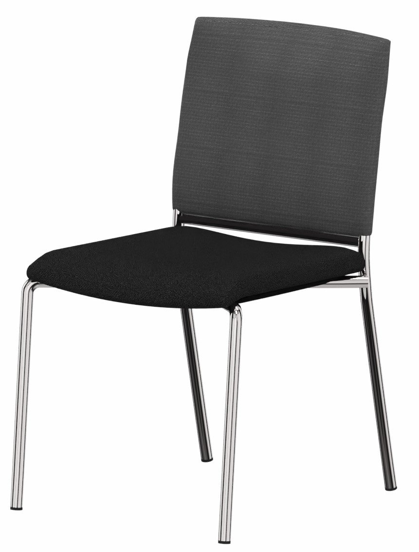ZEN mesh visiteur - Chaise piétement 4 pieds chrome (CH).Assise tissu et dossier résille Bondai Noir (8033)