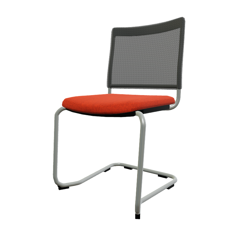 ZEN mesh visiteur - Chaise Piétement luge alu (AL).Assise tissu et dossier résille Step Orange STO (L11)