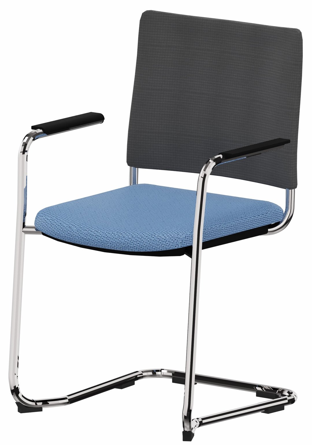 - ZEN mesh visiteur - Chaise Piétement luge avec accotoirs chrome (CH).Assise tissu et dossier résille Step Bleu gris (L06)