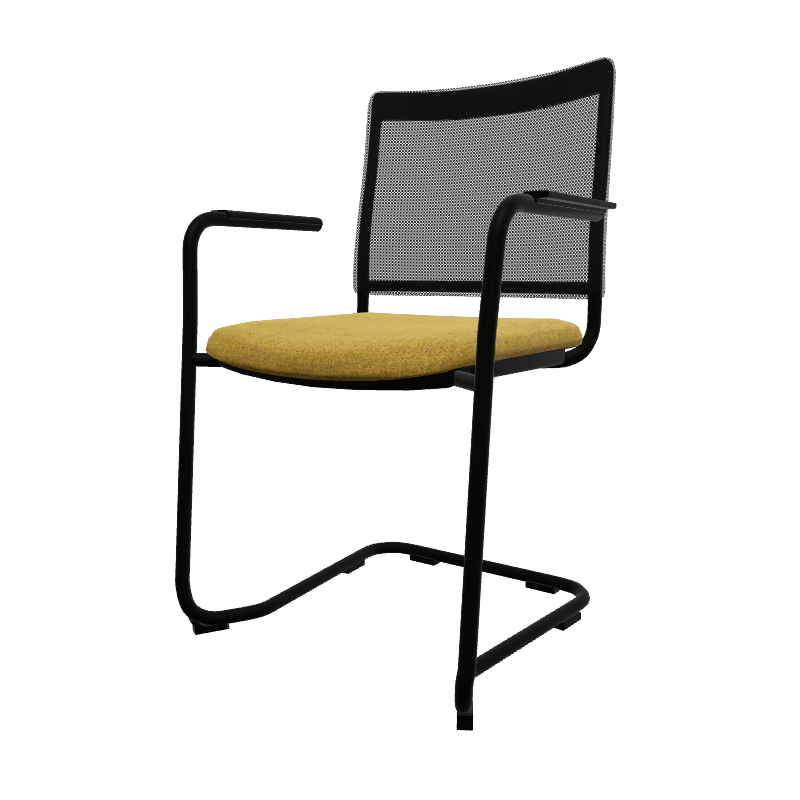 - ZEN mesh visiteur - Chaise Piétement luge avec accotoirs noir laqué (A).Assise tissu et dossier résille Step Jaune foncé (L16)