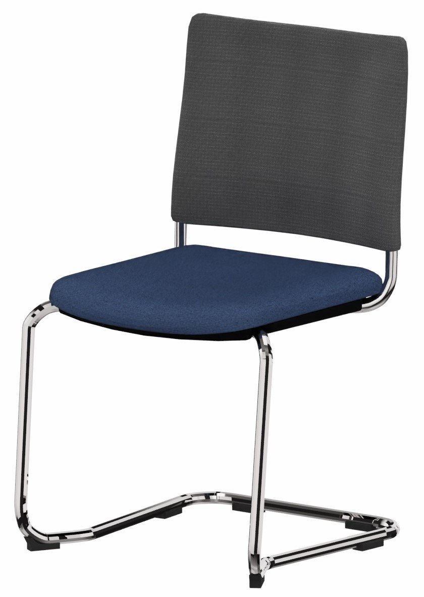 - ZEN mesh visiteur - Chaise Piétement luge chrome (CH).Assise tissu et dossier résille Bondai Bleu (6016)