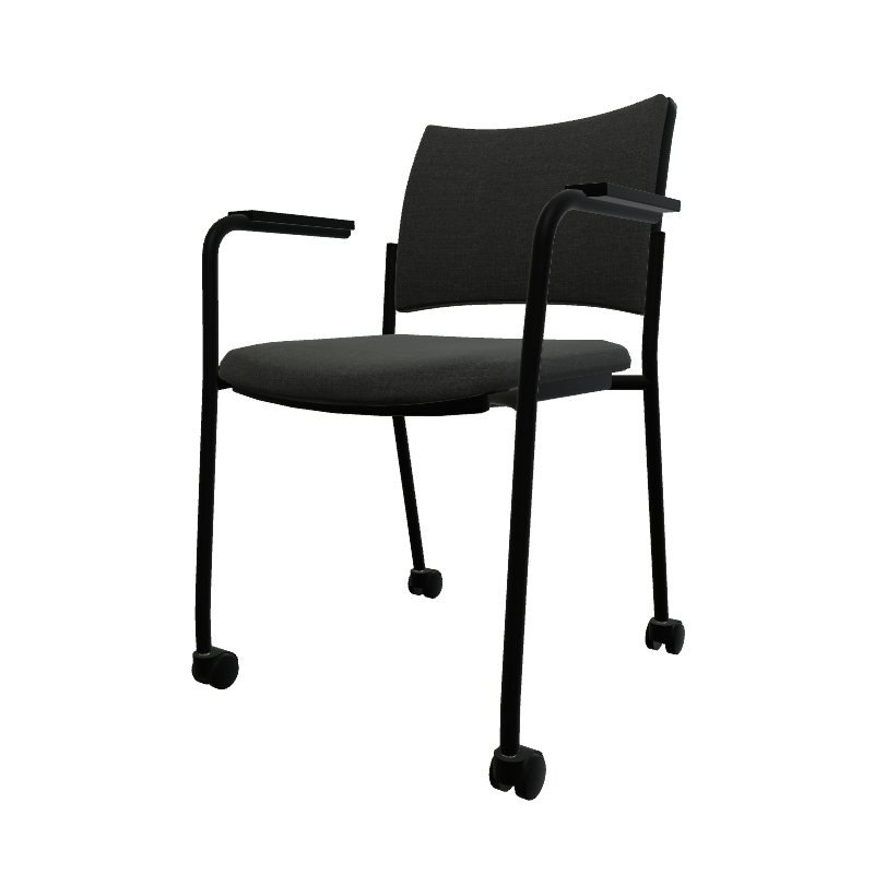 ZEN tissu visiteur - Chaise 4 pieds sur roulettes accotoirs laqué noir (A).Assise et dossier tissu Step Noir STA (L01)