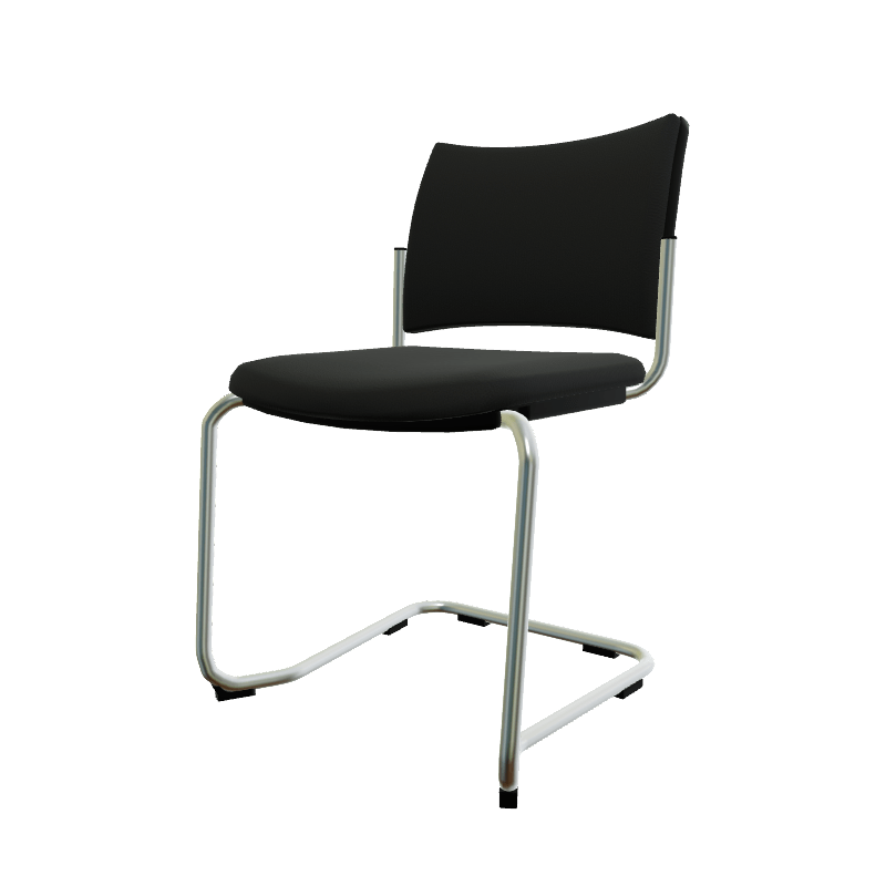 ZEN tissu visiteur - Chaise Piétement luge chrome (CH).Assise et dossier tissu Bondai Noir (8033)